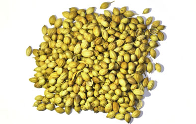 Coriander (UK /ˌkɒrɪˈændə/; US /ˈkɔːriˌændər/ or /ˌkɔːriˈændər/; Coriandrum sativum), also known as cilantro (/sɪˈlɑːntroʊ/), Chinese parsley or dhania,is an annual herb in the family Apiaceae. Coriander is native to regions spanning from southern Europe and northern Africa to southwestern Asia. It is a soft plant growing to 50 cm (20 in) tall. The leaves are variable in shape, broadly lobed at the base of the plant, and slender and feathery higher on the flowering stems. The flowers are borne in small umbels, white or very pale pink, asymmetrical, with the petals pointing away from the center of the umbel longer (5–6 mm or 0.20–0.24 in) than those pointing toward it (only 1–3 mm or 0.039–0.118 in long). The fruit is a globular, dry schizocarp 3–5 mm (0.12–0.20 in) in diameter. The seeds are generally used as a spice or an added ingredient in other foods or recipes, although sometimes they are eaten alone.
